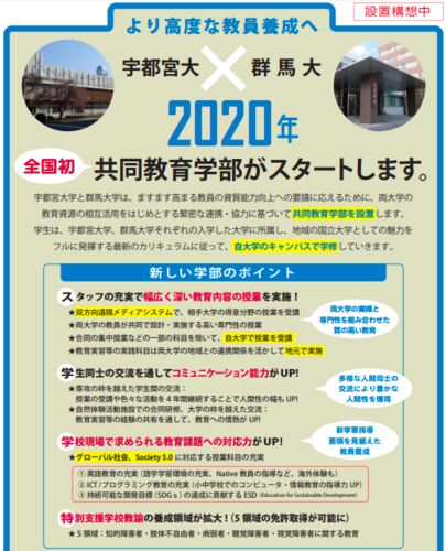 headlines.yahoo.co.jp 群馬大学(前橋市)と宇都宮大学(宇都宮市)は21日、2020年度から全国初の「共同教育学部」を設置することをホームページ上で公表した。少子化の影響で教員採用数が減るのに伴い教育学部の縮小が求められる中、教員養成機関としての…